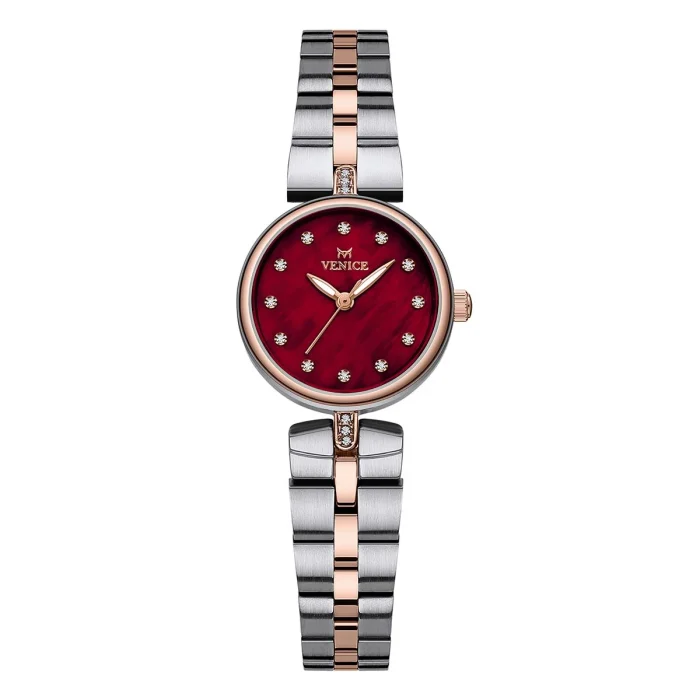 Unveil the allure of true Italian craftsmanship with the Venice V801696111, designed for Women Encased in a captivating Steel Rosegold finish, this watch showcases a Red dial that radiates sophistication. The Metallic strap in Strap Color adds a touch of luxury, making it perfect for any occasion. As a Classic model, its elegance is matched by its exclusivity, underscored by the distinctive Reference Number, V80169